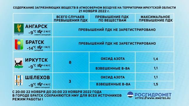 [22.11.2022] Мониторинг состояния атмосферного воздуха 21.11.2022