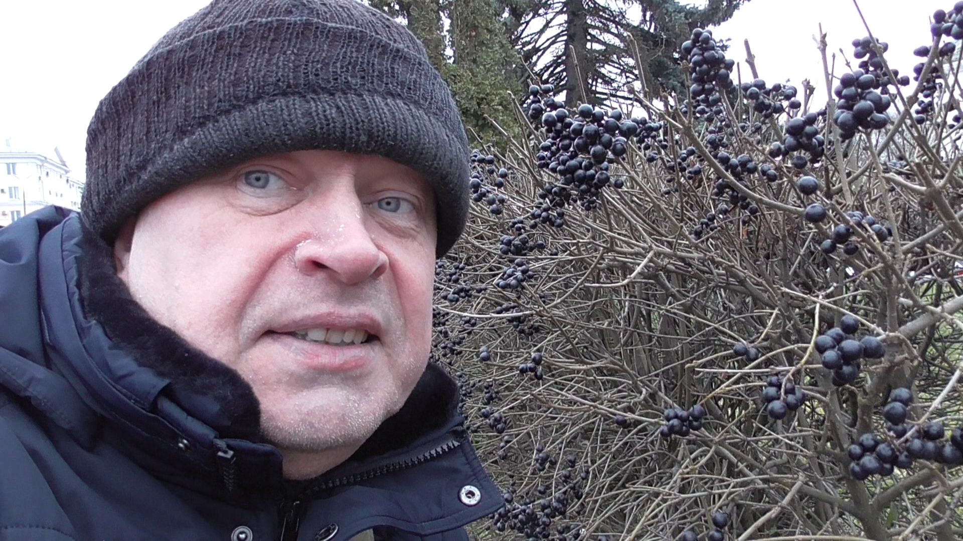 Я видео снимаю про чёрные ягоды на кустах. Декабрь 2025 год
