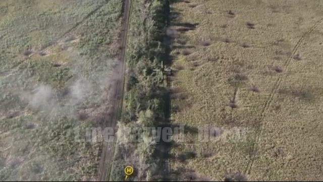 Операторы квадрокоптера со сбросами и минометный расчёт ЗВО добивают брошенную БМП-1 ВСУ на Купянско