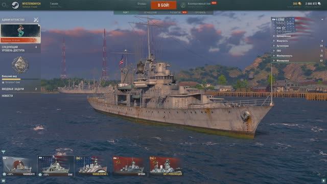 ERIE АМЕРИКАНСКИЙ КРЕЙСЕР I УРОВНЯ В ИГРЕ WORLD OF WARSHIPS