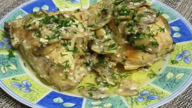 Тушенная курица со сметаной и грибами