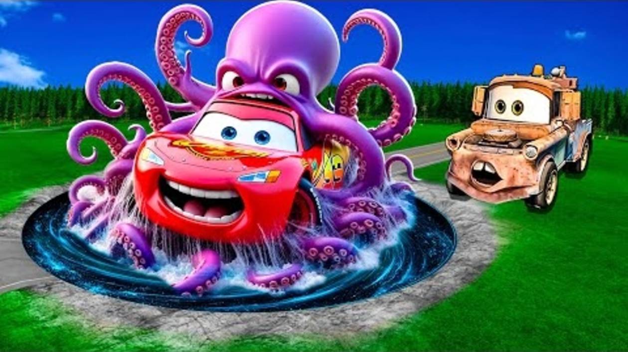 Яма с щупальцами Трансформируется в Чудовище Молнию Маккуина и Большие и маленькие машинки Pixar! Лу