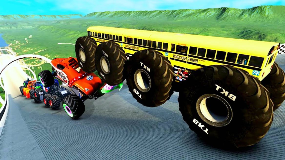 МУЛЬТИКИ ПРО МАШИНКИ Эпические прыжки и столкновения на скоростном монстр-траке Beamng Drive #96