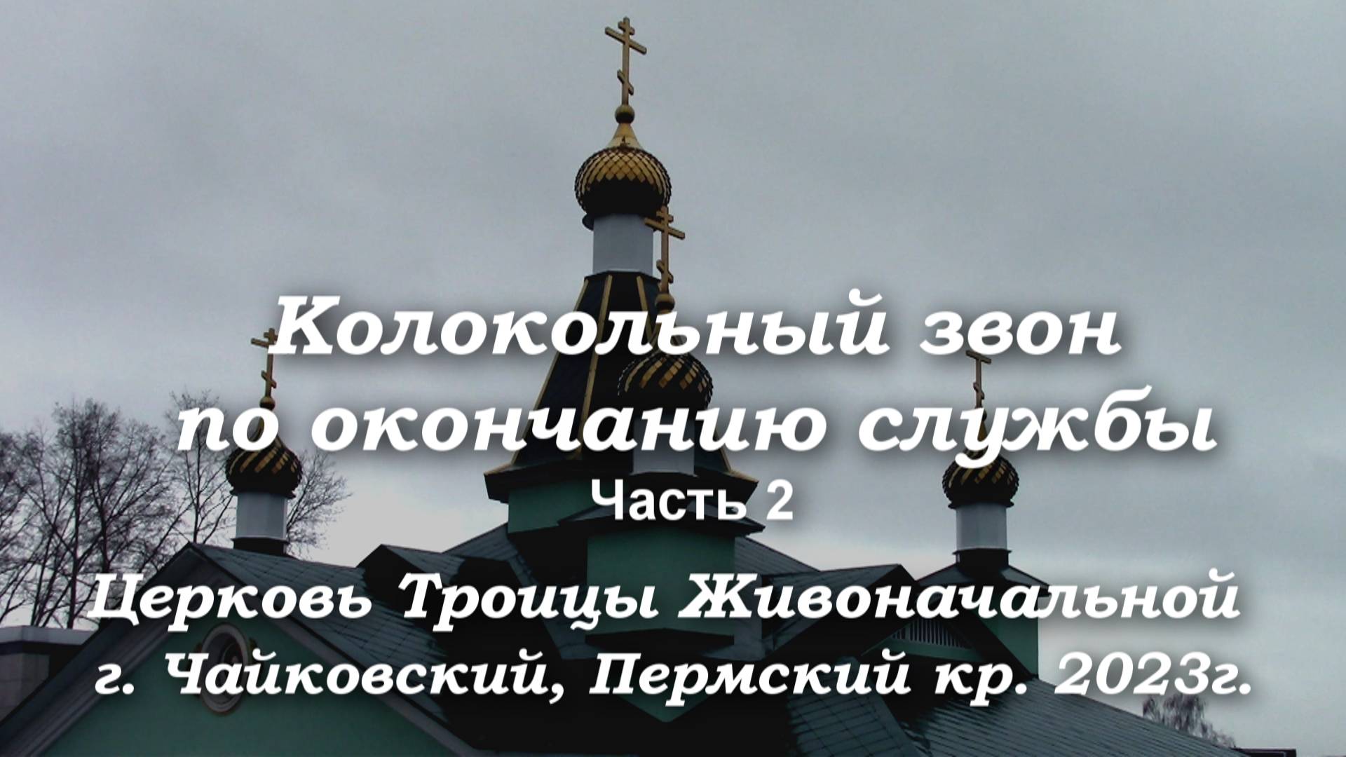 Этот колокольный звон, исполненный на колокольне церкви Троицы Живоначальной (г. Чайковский Пермский кр.), записан 16 ноября 2023г. с разрешения и благословления Благочинного отца Георгия. Запись была сделана после окончания службы. А утренний колокольный звон, призывающий на молитву, принципиально отличается от этого исполнения. Поэтому эта часть имеет номер 2, а чуть позже будет подготовлена и опубликована утренняя часть №1. Приношу свою благодарность за помощь в организации съемок отцу Иоанну и отцу Сергию и, конечно, матушке Ольге, которая и воспроизвела этот колокольный звон. Всем добрым людям желаю здоровья, счастья, оптимизма и всего доброго в наступающем Новом 2024 году !