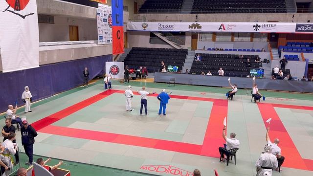 16.11.2025 прошло Первенство Москвы по кудо. Бой в категории до 220 ед 14-15 лет. В синем Матвей Мулюкин (СК «Братство»), в белом Арсений Костылев (СК «Прайд»).