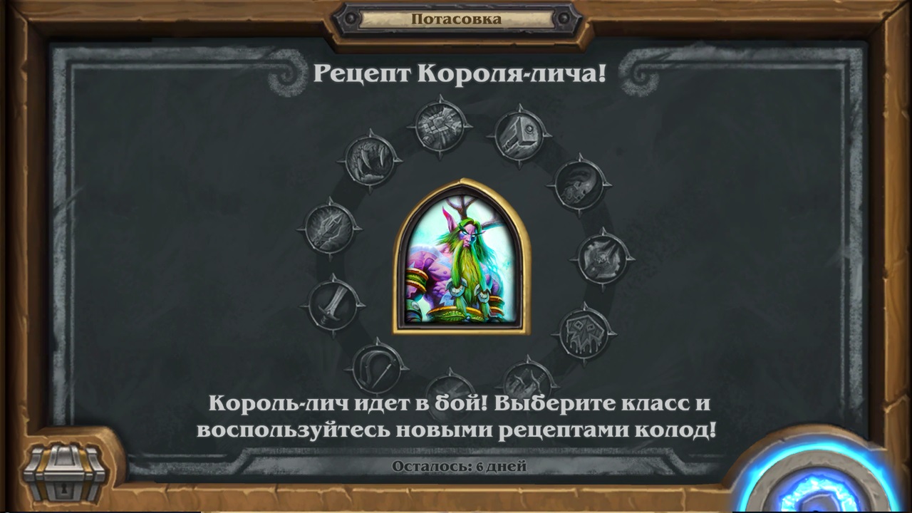 Потасовка в Hearthstone, в период с 07.12.2022 - 14.12.2022 Потасовка: Рецепт Короля-лича! Король-лич идет в бой! Выберите класс и воспользуйтесь новыми рецептами колод!