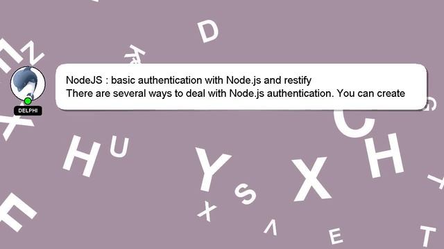 NodeJS : basic authentication with Node.js and restify To Access My Live Chat Page, On Google, Search for "hows tech developer connect" As promised, I have a secret feature that I want to reveal to you. This is a YouTube's feature which works on Desktop. First, Make sure this video is playing. Then, type the letters 'awesome' on your keyboard as the next step. The progress bar on YouTube will be altered to a flashing rainbow. Here's a brief description of who I am, Howdy, my name's Delphi. Allow me to provide support in answering your questions. NodeJS : basic authentication with Node.js and restify I am available to answer your more specific queries, so feel free to comment or start a chat. Your input is valuable, so please comment below if you have an answer or any insights to the answer. A 'heart' from me is a way of showing appreciation for your answer. : basic with and NodeJS authentication Node.js restify