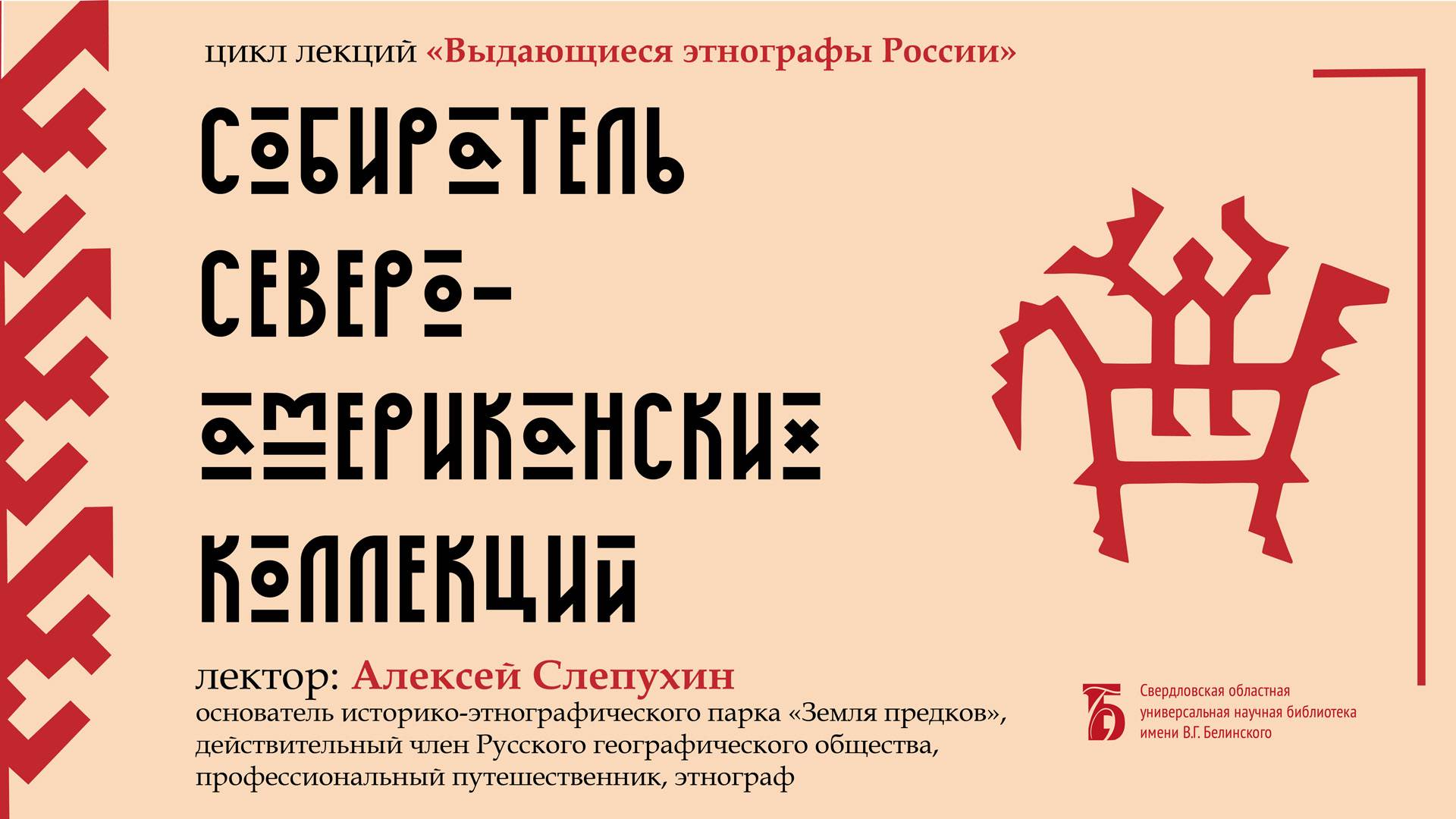 Лекция из цикла «Выдающиеся этнографы России» Илья Гаврилович Вознесенский в течение долгих восьми лет путешествовал по Северной Америке и собирал уникальные коллекции – зоологические, этнографические, ботанические, ставшие бесценным вкладом учёного в мировую культуру. Лектор – Алексей Слепухин, действительный член Русского географического общества, профессиональный путешественник, основатель Историко-этнографического парка «Земля предков». Лекция состоялась в 2021 г. Свердловская областная универсальная научная библиотека им. Белинского http://book.uraic.ru/ сайт https://vk.com/club6745014 VK