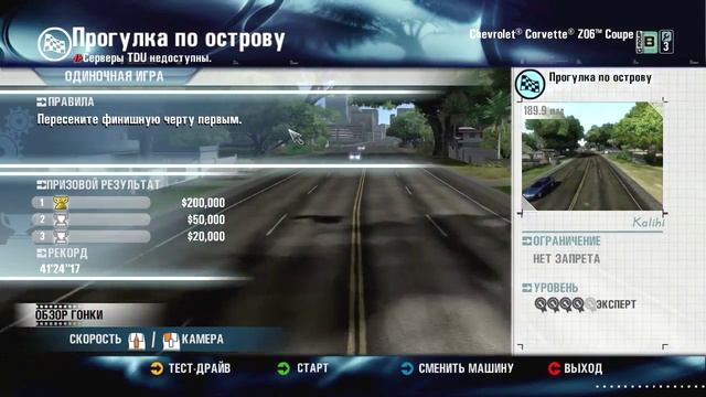 Chevrolet Trophy. Вернуть отправителю. Возвращение инвестиций. Гонка по гигантским шпилькам. Горная трасса. Дорога к победе. Доступная мечта. Жажда скорости. Запретное падение. Картинг. Кольцо скорости. Король дороги. Опасность за углом. Петля Бранчу. Петля Нардуччи. Петля Тиксиэр. Прогулка по острову. Рекорд 8 водителей... Спуск Марчетти. Удачный день. Уничтожитель к вашим услугам.