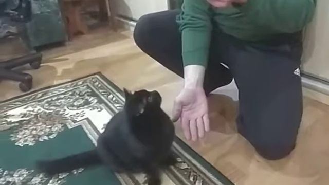 Моя кошка Василиса умеет давать лапу!!!