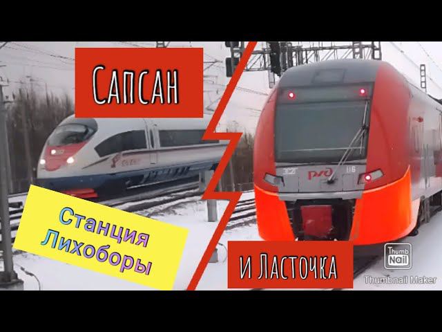 "Сапсан и Ласточка". ЭВС1-16 "Сапсан" и ЭС2Г-116 "Ласточка". Станция Лихоборы.