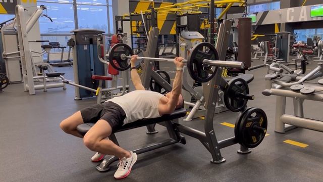 Личный тренер в кармане: https://apps.rustore.ru/app/com.nla.personalfitnesstrainer Техника выполнения: ⁃ Располагаемся на скамье так, чтобы линия глаз находилась под штангой; ⁃ Заводим ноги под себя; ⁃ Прошибаем поясницу; ⁃ Сводим лопатки; ⁃ Симметрично располагаем руки на грифе, ориентируясь по рискам на грифе; ⁃ На задержке дыхания снимаем штангу со стойки; ⁃ На вдохе опускаем вниз, на выдохе поднимаем вверх. Задействованные мышцы: ⁃ Большая грудная мышца; ⁃ Передний пучок дельты; ⁃ Трицепс. Ошибки: ⁃ Хаотичная постановка ног; ⁃ Разведённые лопатки; ⁃ Несимметричная расположение рук на грифе. Дополнение: Более узкое расположение рук на штанге сместит нагрузку на трицепс.