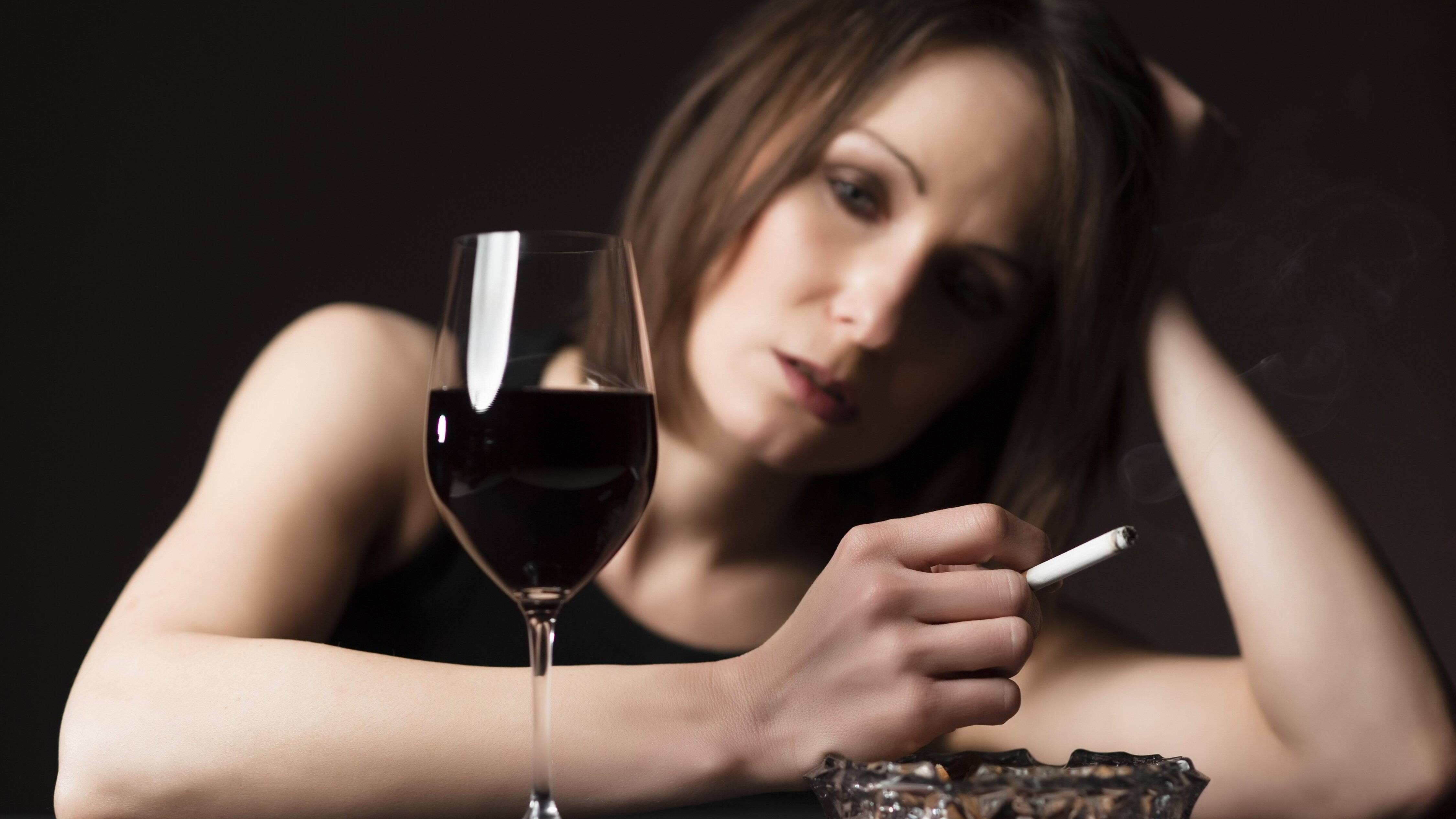 Женщина пьёт вино