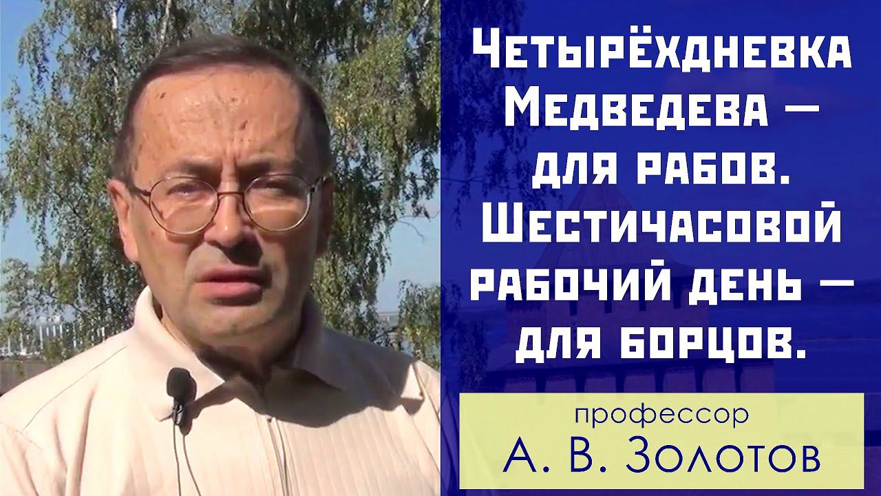 4-дневка Медведева - для рабов. 6-часовой рабочий день - для борцов. Профессор А.В.Золотов.