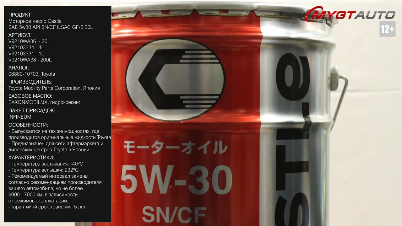 Продукт: Моторное масло Castle SAE 5w30 API SN/CF ILSAC GF-5 20L Наш телефон: 8-800-550-57-22 ПН-ПТ 9.00-17.00 (МСК+4) Артикул: V9210WA36 - 20L V92103334 - 4L V92103331 - 1L V9210WA38 - 200L Аналог: 08880-10703, Toyota Производитель: Toyota Mobility Parts Corporation, Япония Базовое масло: EXXONMOBIL/JX, гидрокрекинг Пакет присадок: INFINEUM Ссылка для покупки: https://mygt.ru/Oil/selection/castle-sncf-5w-30-20-l.html Аналог Toyota 08880-10703: https://mygt.ru/Oil/selection/toyota-sngf-5-5w-30-20-l--maslo-motornoe.html Особенности: - Данный продукт выпускается на тех же мощностях, где производится оригинальные жидкости Toyota и предназначен для сети афтермаркета и дилерских центров Toyota в Японии. -Бренд Castle принадлежит Toyota Mobility Parts - это дочерняя компания корпорации Toyota. Не смотря на тесную связь с Toyota продукция Castle может использоваться для любых японских корейских и европейских автомобилей при условии соответствия спецификаций. Характеристики: - Плотность при 20°C: 0.845 кг/л - Вязкость при 40°C: 70.10 мм²/с - Вязкость при 100°C: 10.40 мм²/с - Индекс вязкости ГОСТ 25371-97: 170,2 - Температура застывания: -40°C - Температура вспышки: 232°C - Зольность сульфатная: 0,92% - Щелочное число: 7,37мг КОН/г - Массовая доля фосфора: 0,058% - Хорошие моющие свойства - Наличие органического молибдена - Невысокая зольность - Рекомендуемый интервал замены: согласно рекомендациям производителя вашего автомобиля, но не более 6000 - 7000 в зависимости от режимов эксплуатации. - Срок гарантийного хранения: пять лет Отличие упаковки оригинала: Дата производства тары должна быть ровна или ранее даты розлива продукта. Ссылки на дополнительные материалы по продукту, а также SDS: http://nskrobot.ru/images/FOTO/MYGT_RU/V9210WA36_SDS_MYGT_RU.pdf #характеристикимаслаV9210WA36 #моторноемасло #antonmygt #mygtru #mygtauto #oemcatalog #масломан Наш сайт: MYGT.RU Наш канал ПРАВДА ПРО АВТОМАСЛА: https://www.youtube.com/channel/UC5JygfcXAA5Xq18sxUx_wIQ/ Телефон: 8 800 550 57 22 Бесплатно по России Внимание! Полное либо частичное копирование данного материала без согласия автора допускается только при указании ссылки на источник (данный канал) Все права защищены ANTON_MYGT #anton_mygt #anton_voronkov #mygtauto #масломан #каталог масел и спецжидкостей