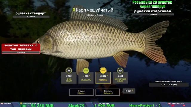 Поддержка донатом https://new.donatepay.ru/@1032463 Альтернативный донат https://www.donationalerts.com/r/kalyamba11 5536913964533059 карта Тинькоф Если стрим лагает,смотри стрим на трово https://trovo.live/s/Kalyamba_na_Ribalke Мой ВК - https://vk.com/kalyantv НИК в игре kalyan11 НАШ ДИСКОРД СЕРВЕР https://discord.gg/4ZzSQkQtsK Заказ водоема на 1 час - 500р ( весь стрим 2500р ) Модерка на канале 1200р ( каждая следующая на 100р больше) Озвучка доната на 40р,50р,100р,200р,300р,500р,1000р ✅Призы в рулетке "ЗОЛОТАЯ" ✔ ЗОЛОТО ✔ ПРЕМ ✔ КАТУШКИ РАПТОР 40, АЗИМУТ 10000, СИЛЬВЕР 80, ТАЙГА с 30 ✔ ПАЛКИ ПИЛКЕРНАЯ, ДОНКА МОРСКИЕ, ✔ РОД ПОД, СТУЛЬЯ ✅Призы в рулетке СТАНДАРТ : ✔ катушка "РАПТОР 40" ✔ катушка "АЗИМУТ 10000" ✔ катушка "ТАЙГА С30, С40," ✔ катушки 60 для медного ( ЭВИИ, НАТОРЫ, ГОЛДА, и тд) ✔ ПИЛКЕРНОЕ УДИЛИЩЕ КОРОЛЕВА ОКЕАНА ✔ Морское Донное удилище ✔ прем ( 3, 7, 30 дней) ✔ золото ( 1, 3, 5, 10, 20 ,50) ✔ билет на море ( 1, 3, 5 дней) ✔ голд наживка и др. ✅Призы в рулетке "СТАРТОВАЯ" ✔ катушка "silver80" ✔ катушка "БЕЛЫЙ КАЛИБР" ✔ катушка "Черный калибр" ✔ катушка "Протон" ✔ катушка "Нарга 6000" ✔ Набор Фидерист и спинингист ✔ Карповик Фортуна ✔ фидерные удилища ✔ прем, золото, алкашка, наживки и тд P.s Рулетка это не казино, а награда за поддержку стримера. Вечный ТОП ПОДДЕРЖКИ (11.05.2024) 1. Dimon_pokemonchik 119 784 2. Interceptor 75 508 3. Skreb79 71 261 4. une personne 68 619 5. Нарвал77 31 550