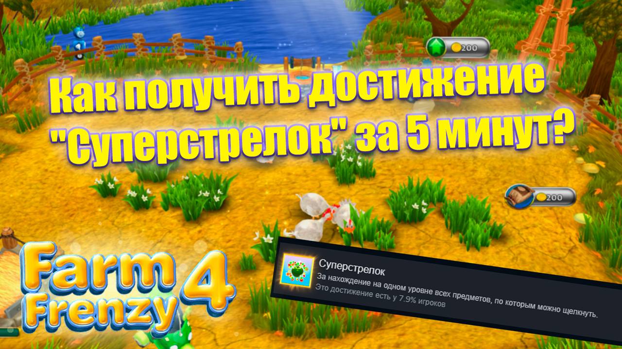 Как получить достижение в игре Farm Frenzy 4 которое называется суперстрелок? Ответ в этом видео. Просто кликой по объектам на одном уровне пока не получишь это достижение и всё.