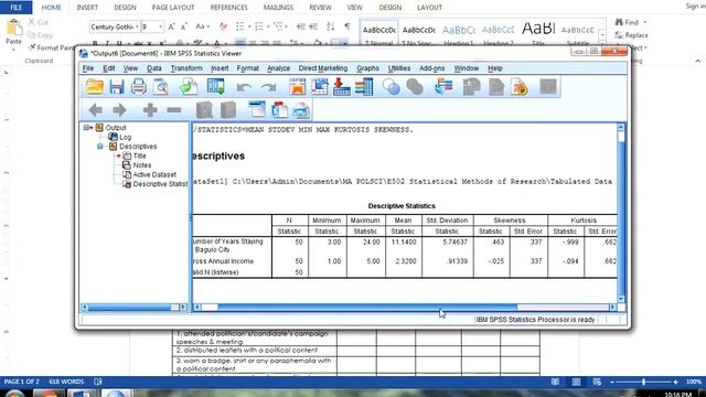 This video tutorial presents how to use Descriptive Statistics (Mean, Standard Deviaiton, Variance, etc.) in SPSS. This video tutorial is for my POS225 - Statistics class. The languages used are English and Filipino (Tagalog). Disclaimer: I stutter/stummer a lot.