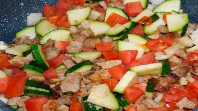 Мясной омлет с кабачками и помидорами