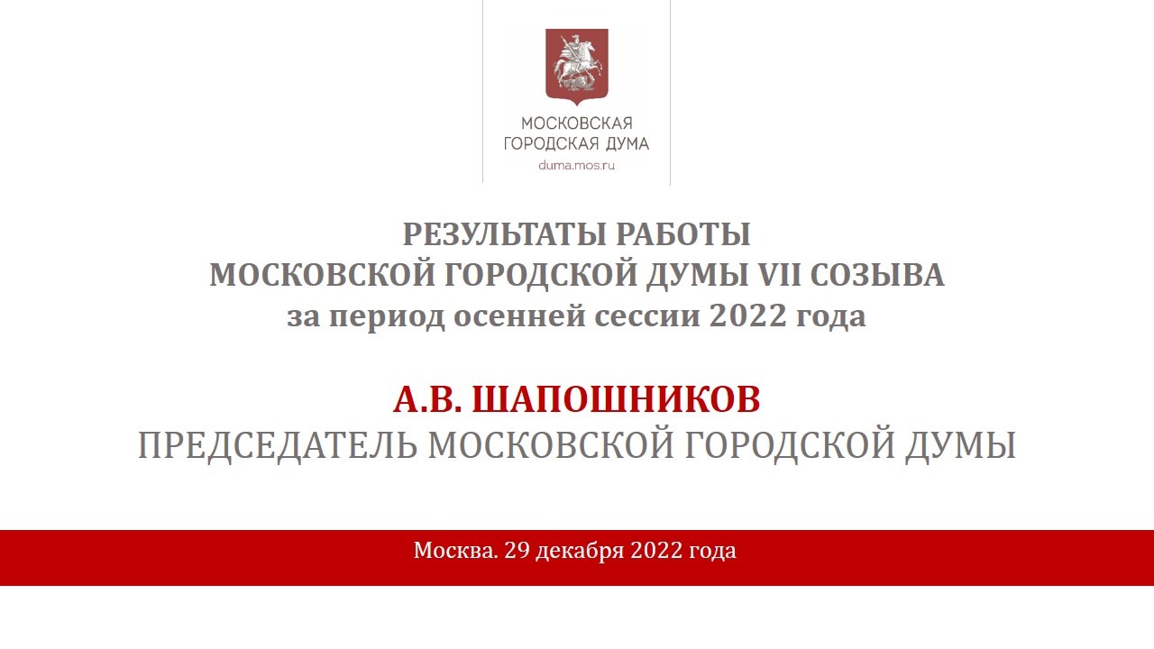 Встреча Председателя Московской городской Думы Алексея Шапошникова с журналистами парламентского пула по итогам работы столичного парламента VII созыва за период осенней сессии 2022 года