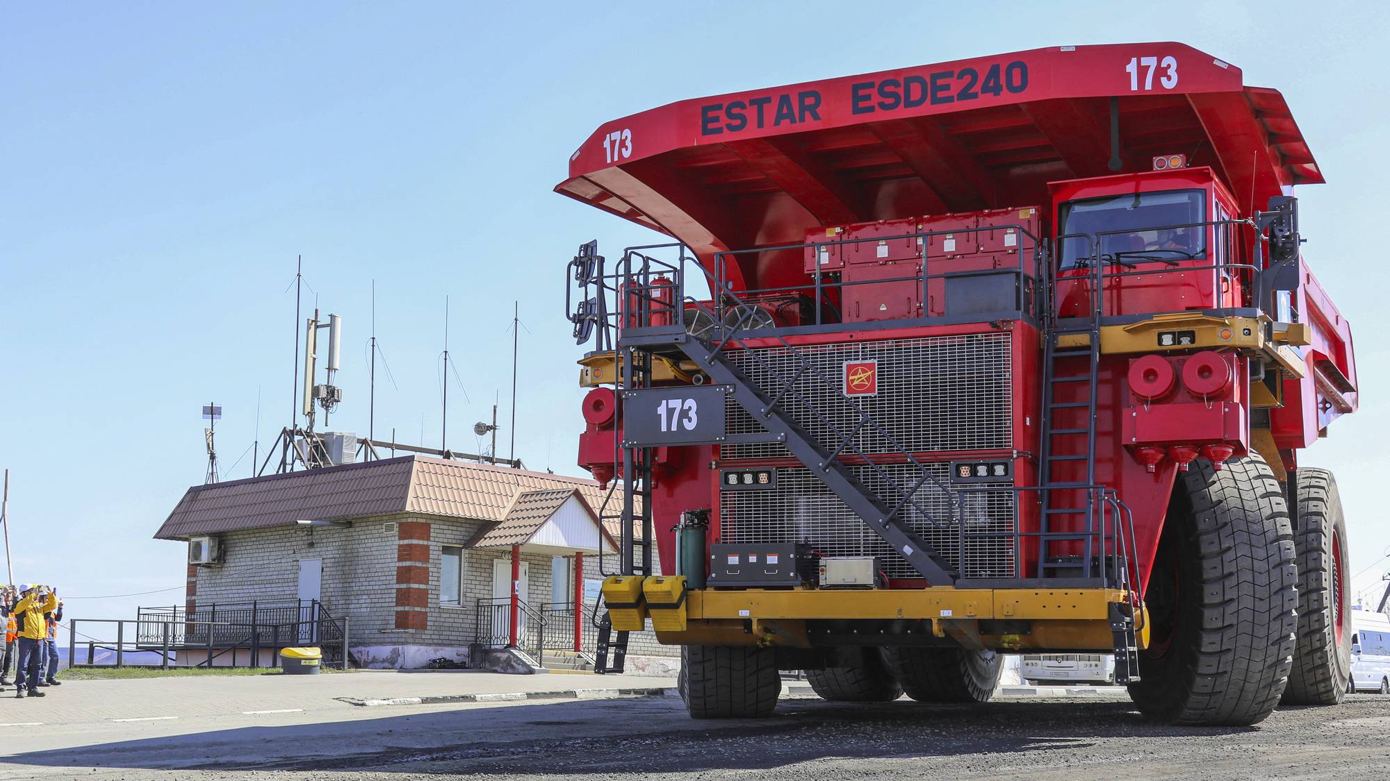 Подобного типа карьерная техника первая в России. Грузоподъёмность каждого из самосвалов - 240 тонн. Логотип компании-производителя — звезда, а значит при запуске нового большегруза можно загадывать желание.