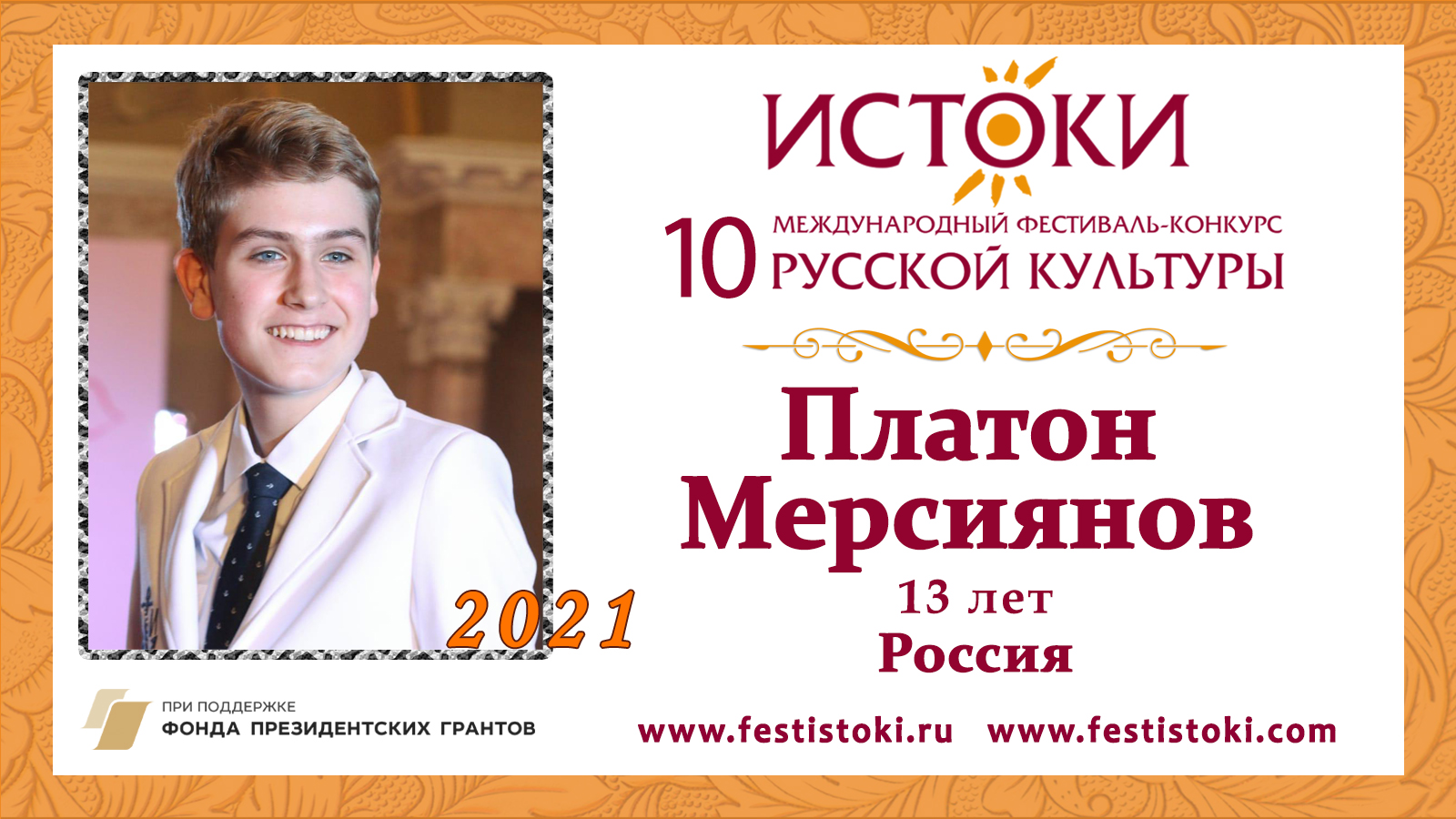 Участник Юбилейного X Международного фестиваля-конкурса русской культуры "Истоки". Сайт: www.festistoki.ru / www.festistoki.com E-mail: festistoki@mail.ru