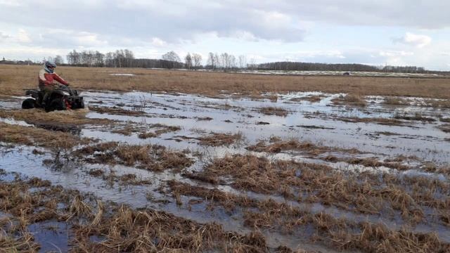 Первый раз выехали с дочкой покататься на её новом квадроцикле KAYO Bull-2B и я на Kawasaki KVF300