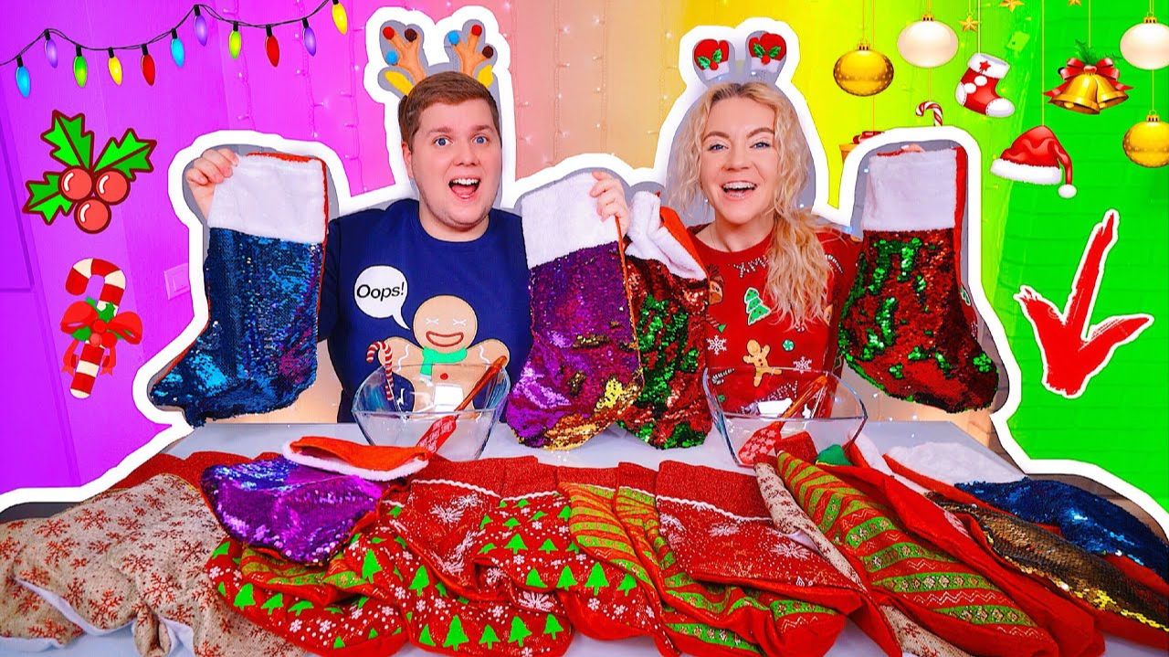 ТАЙНЫЕ Рождественские НОСКИ СЛАЙМ ЧЕЛЛЕНДЖ ЛИЗУН из Случайных Ингредиентов Slime Challenge