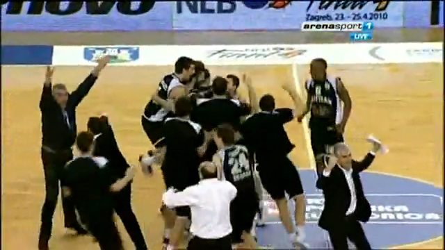 Баскетбол. Адриатическая лига 2009–10. Финальный матч. Заклятые соперники "Партизан" (Сербия)–"Цибона" (Хорватия). Овертайм. 8 секунд до конца.Победа!Нет. 0,6 секунд до конца. Немыслемый бросок. Победа.