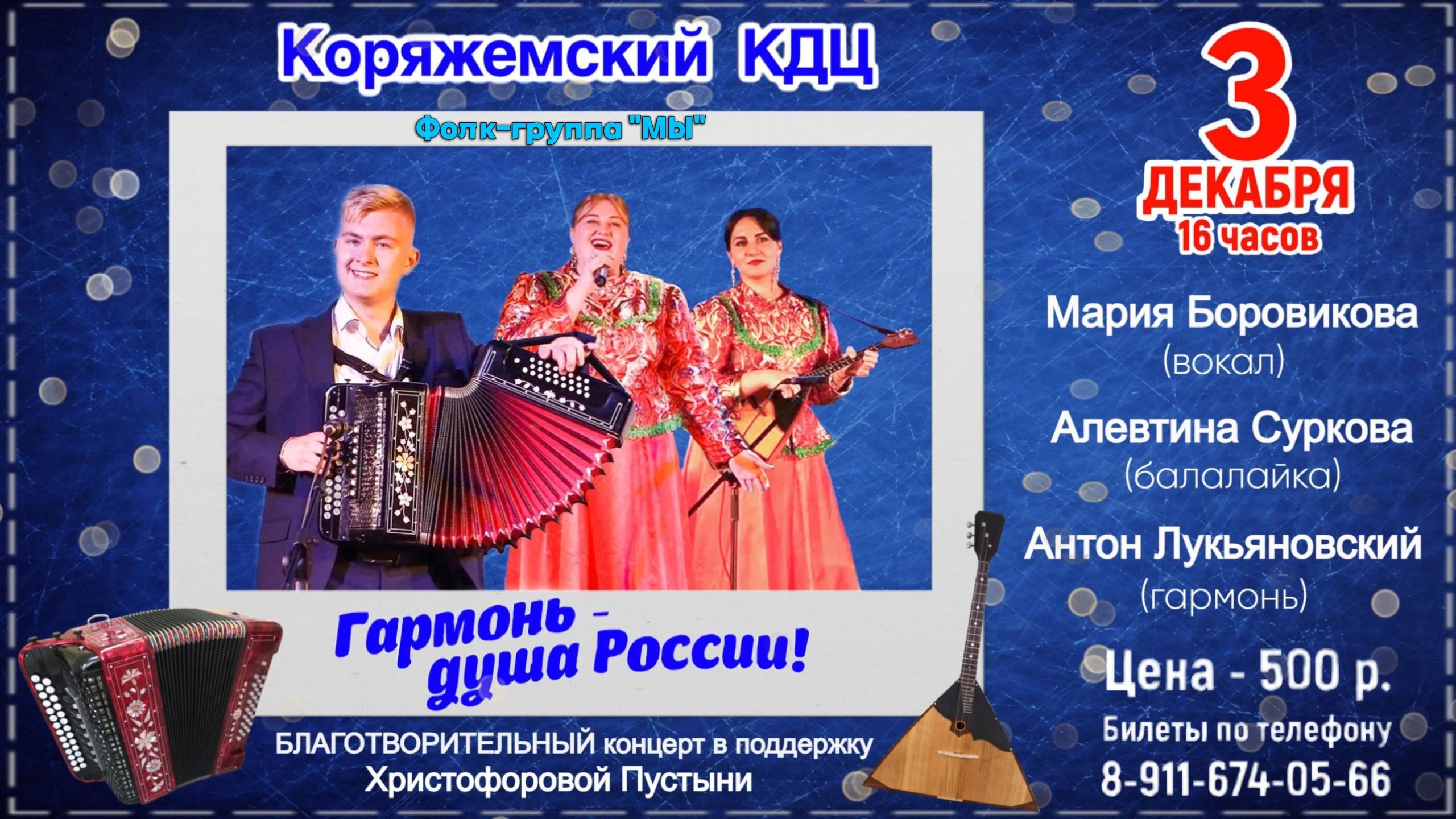 г.Коряжма | Фолк-группа "МЫ" с концертной программой ГАРМОНЬ - ДУША РОССИИ! | 03.12.2023 год