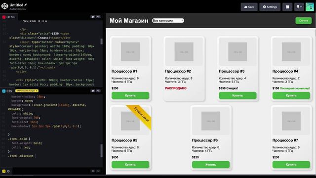 В видео разбираем CSS файл для списка товаров из интернет-магазина. Хотите узнать больше? Пройдите дистанционное обучение на курсе образовательного центра РУНО "CSS с примерами": https://clck.ru/3D9AMj На протяжении обучения вы не только получите удостоверение с включением в Федеральный реестр, но и добавите в свое портфолио целых 6 практических работ, которые продемонстрируют ваши новые навыки потенциальным работодателям. Что же вы научитесь делать после завершения курса? Вы освоите профессиональную работу с языками HTML5 и CSS3, научитесь писать код по современным стандартам в редакторе Codepen, сможете верстать формы авторизации, списки товаров и диаграммы, а также использовать встроенные стили и отдельные CSS файлы. Вы также узнаете, как создавать семантически правильную структуру веб-страниц и работать с популярными фреймворками, такими как Tailwind, Materialize и Bootstrap. И в дополнение к всем этим знаниям, вас ждет бонусное видео по окончании курса! Не упустите возможность прокачать свои навыки и стать настоящим специалистом в веб-дизайне. Подписывайтесь, регистрируйтесь на курс и начните свое обучение уже сегодня!