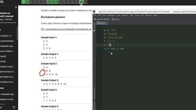 Инди-курс по Python https://stepik.org/course/63085/promo Свой вопрос по курсу можешь задать в чате https://t.me/+SlnNhAO7caBlNDM6 Также подписывайся на мой телеграмм-канал https://t.me/python_egoroff Условие задачи https://stepik.org/lesson/296614/step/15?unit=278348 Знакомство с циклом while https://youtu.be/Ll3AN1FXXfE https://stepik.org/course/63085/syllabus Курс по основам python на Степике https://stepik.org/course/72969/promo Записывайся на курс на Stepic по ООП, где найдешь много практических задач Данная задача решается при помощи двух указателей два указателя python Если кому нужна помощь, предлагаю индивидуальные занятия. Подробнее пишите в личку в вк https://vk.com/artem_egoroff https://vk.com/python.study В данном группе можете найти информацию о новых видео и задать вопросы