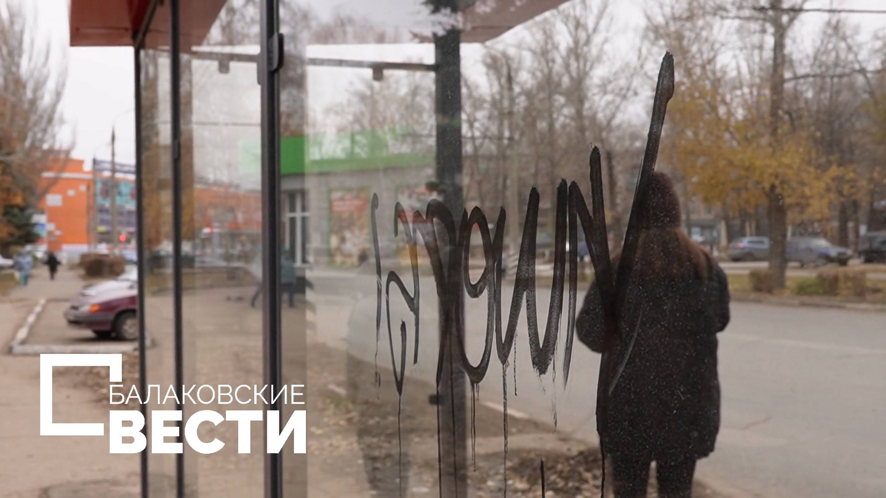 В Балакове неизвестные лица испортили новый остановочный павильон