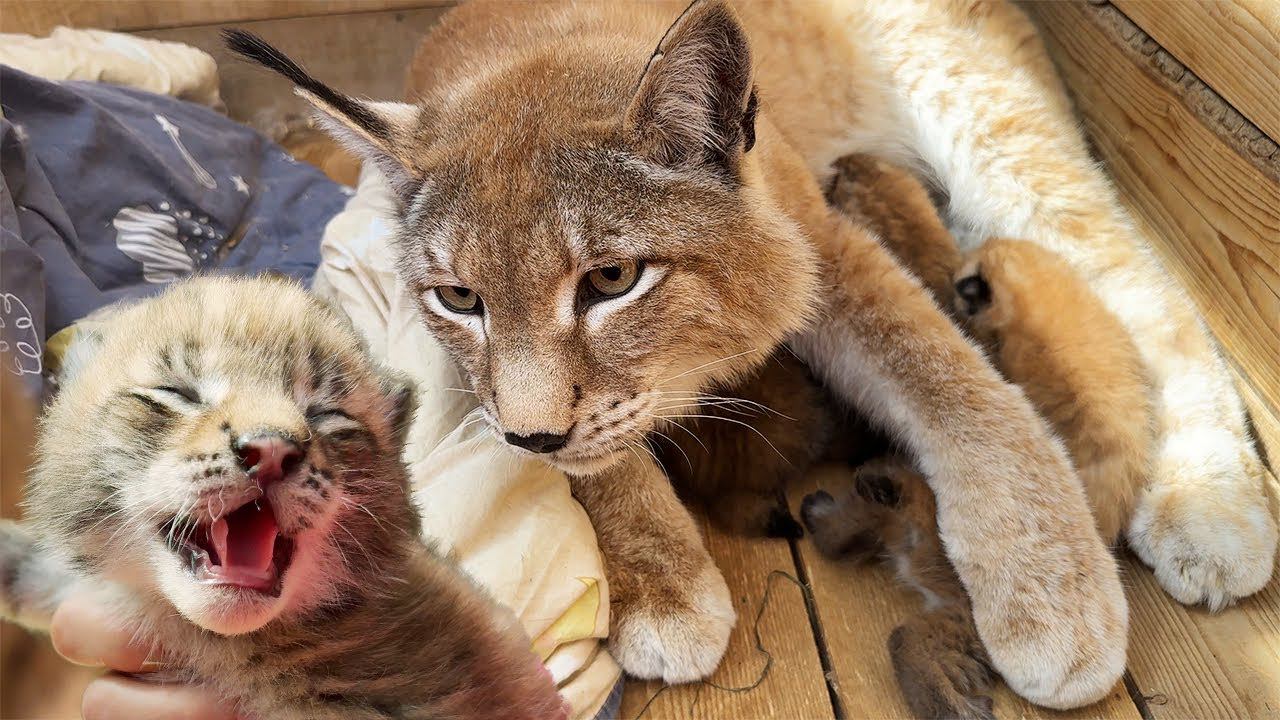 РЫСЬ УМКА ЗНАКОМИТСЯ С РЫСЕНКОМ ХАННЫ / Рысь попала в чужое гнездо с котятами