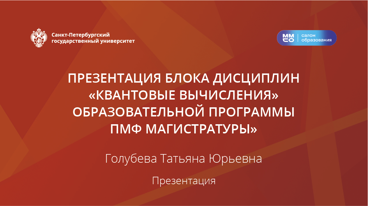 Презентация блока дисциплин «Квантовые вычисления» образовательной программы ПМФ магистратуры»