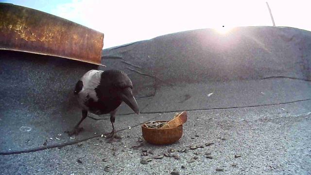 Серая ворона, Мини-камера MIXI А18, пример видео. Наблюдение птиц 18.04.2023