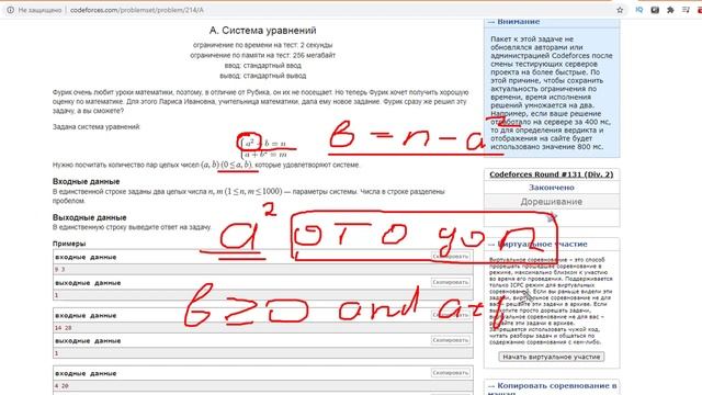 Разбор задачи "Система уравнений" codeforces