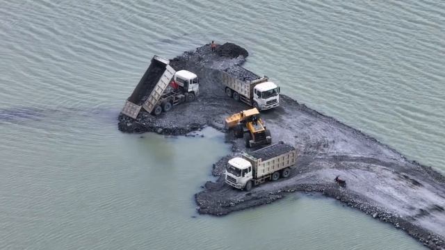 DumpTruck SHACMAN Transport Stone Filling In Water With WheelLoader Push