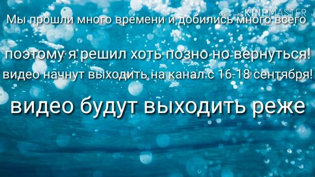 Всем привет, я возвращаюсь на Ютуб! Да, я это сделал, все было дело в том (когда я отсутствовал) были проблемы с компьютером и интернетом , сейчас же на данный момент(12.09.2019) все наладилось! Видео начнут выходить с 16-18 сентября! Видео станут немного лучше по качеству к концу этого месяца. Спасибо за просмотр, удачи , до новых встреч!..