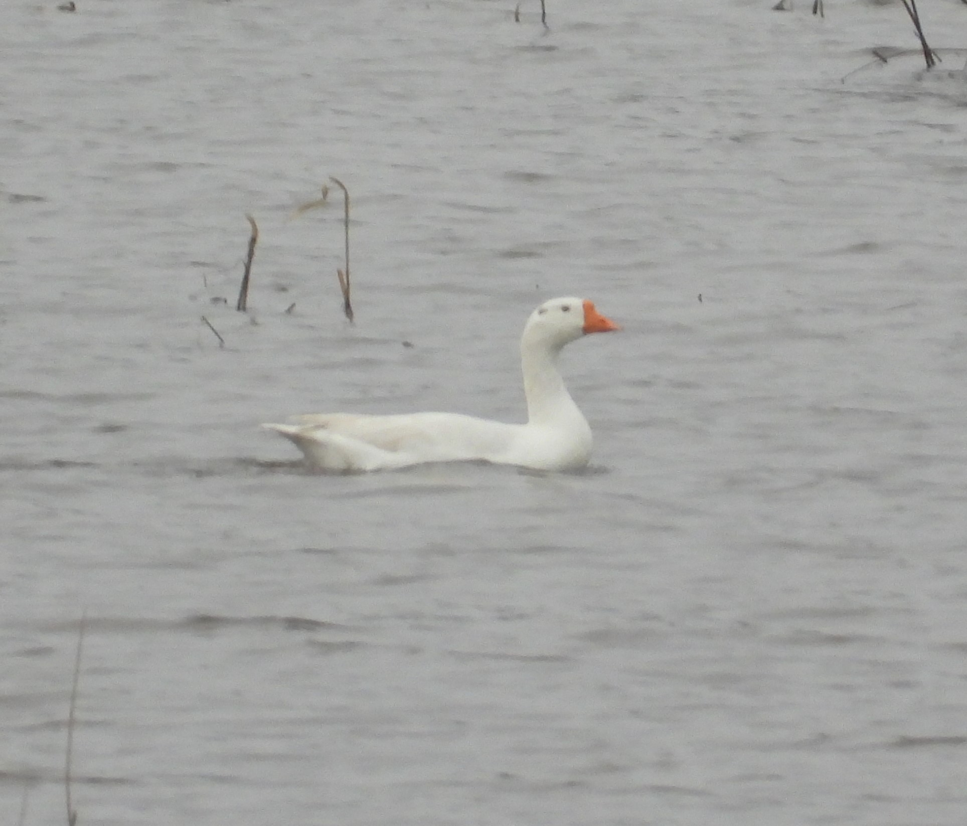 необычный белый гусь, наблюдние птиц в Новгородской области, 6 апреля 2024