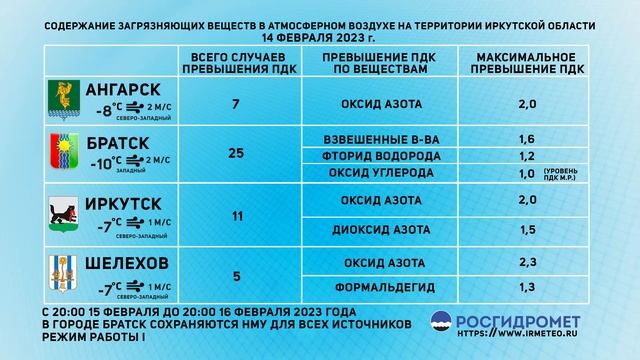 [15.02.2023] Мониторинг состояния атмосферного воздуха 14.02.2023