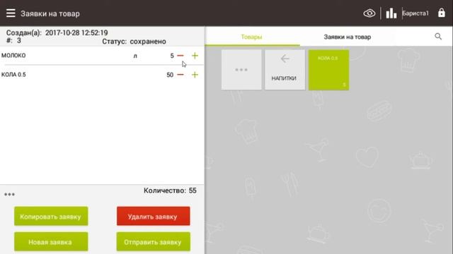 Smart Touch POS для Бариста: 6. Составление заявки на товары и расходники
