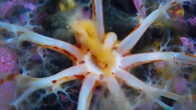 Морской огурец открывает рот, чтобы поесть.