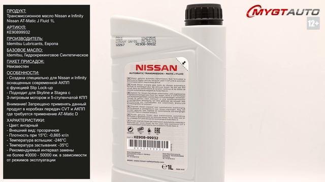 Продукт: Жидкость для автоматических коробок передач Nissan и Infinity, Nissan AT-Matic J Fluid 1L Наш телефон: 8-800-550-57-22 ПН-ПТ 9.00-17.00 (МСК+4) Артикул: KE90899932 - 1L Производитель: Idemitsu Lubricants, Европа Базовое масло: Idemitsu, Гидрокрекинговое Синтетическое Пакет присадок: Неизвестен Ссылка для покупки: https://mygt.ru/oil/original-oils-Europe/nissan-atf-at-matic-j-fluid-1-l.html Особенности: NISSAN Matic Fluid J – жидкость, созданная специально для машин марок Nissan и Infinity, оснащенных современной АКПП с функцией Slip Lock-up. Кроме того, это единственная трансмиссионная жидкость, которая подходит для заливки в Skyline и Stagea с 3-литровым мотором и 5-ступенчатой КПП. Внимание! Запрещено применять данный продукт в коробках передач CVT и АКПП где требуется применение AT-Matic D! Характеристики: - Вязкость кинематическая при 40°С:ГОСТ 33 33,39 мм2/с - Вязкость кинематическая при 100°C: ГОСТ 33 7,39 мм2/с - Индекс вязкости: ГОСТ 25371 168 - Температура застывания: ГОСТ 20287 -35°C - Температура вспышки (СОС): -246°С - Плотность при 15°C: -0,865 кг/л - Цвет: янтарный - Внешний вид: прозрачное - Рекомендуемый интервал замены не более 40000 - 50000 км. в зависимости от режимов эксплуатации Особенности оригинала упаковки: - Задняя этикетка не на клеевой основе - Рельефный знак пирамиды на дне канистры - Для оптовиков: Каждая банка в упаковке имеет свой уникальный номер, который на единицу отличается от предыдущего #характеристикимаслаKE90899932 #моторноемасло #antonmygt #mygtru #mygtauto #oemcatalog Наш сайт: MYGT.RU Наш канал ПРАВДА ПРО АВТОМАСЛА: https://www.youtube.com/channel/UC5JygfcXAA5Xq18sxUx_wIQ/ Телефон: 8 800 550 57 22 Бесплатно по России. Внимание! Полное либо частичное копирование данного материала без согласия автора допускается только при указании ссылки на источник (данный канал). Все права защищены. ANTON_MYGT #anton_mygt #anton_voronkov #mygtauto #масломан #каталог масел и спецжидкостей