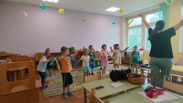 Красочные стаканчики и деревянные ложки дети группы 6/6 использовали для украшения своего танца.