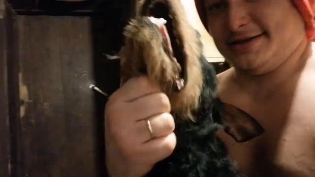 Привет из бани) Паримся с Ягдтерьером.