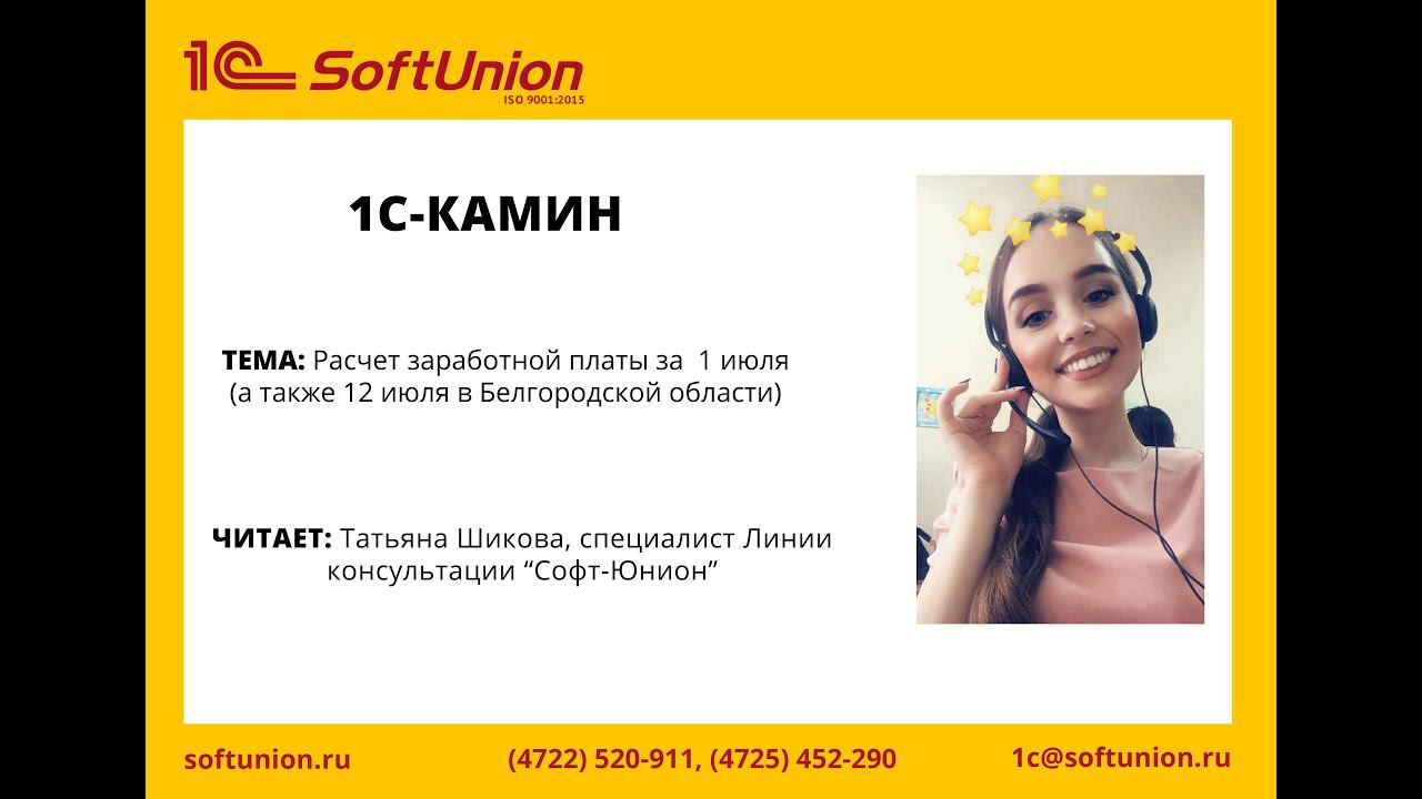 Расчет зарплаты и учет времени за 1 июля + 12 июля в Белгородской области в 1С:Камин 5.0