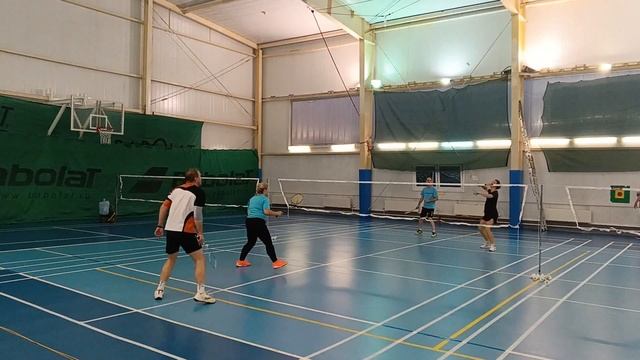 Тренировочная игра в бадминтон через сетку. Играют любители, новички и опытные бадминтонисты. Игра на сборах в доме отдыха Снегири от клуба Искра #badminton #badmintonlovers #badmintonrussia #бадминтон #искра #iskra #snegiri #снегири