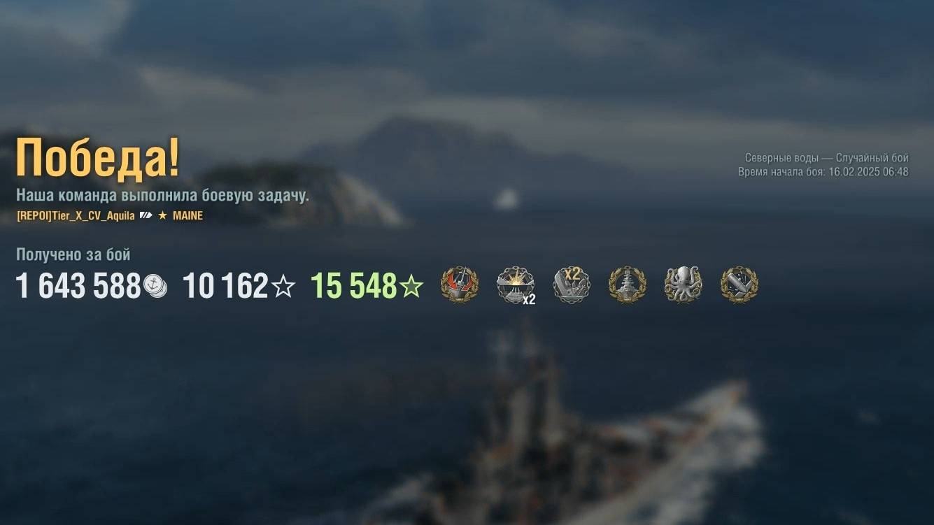 Супер линкор Maine. Игрок: Tier_X_CV_Aquila (ASIA). Карта: Северные воды - Случайный бой. Урон: 398к. Maine - Супер линкор США