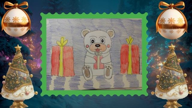 Мои новогодние рисунки коты , мишки , заяц !